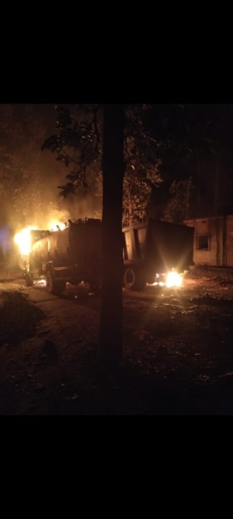 बड़कागांव: प्रखंड अंतर्गत गोंदलपुरा पंचायत के सुदूर ग्रामीण क्षेत्र जोरकाठ में सड़क निर्माण कार्य में लगे वाहनों को अज्ञात अपराधियों के द्वारा आग लगा दिया गया है। सूत्रों से मिली जानकारी के अनुसार रात्रि लगभग 10 बजे बादम से चरही तक हो रहे सड़क निर्माण कार्य में लगे 2 जेसीबी, 2 हाइव, एक ग्रेडर, एक जनरेटर और एक पानी टैंकर में आग लगा दिया गया है। रात्रि होने और जंगल होने के कारण घटना के बारे में विस्तृत जानकारी अभी प्राप्त नहीं हुई है।