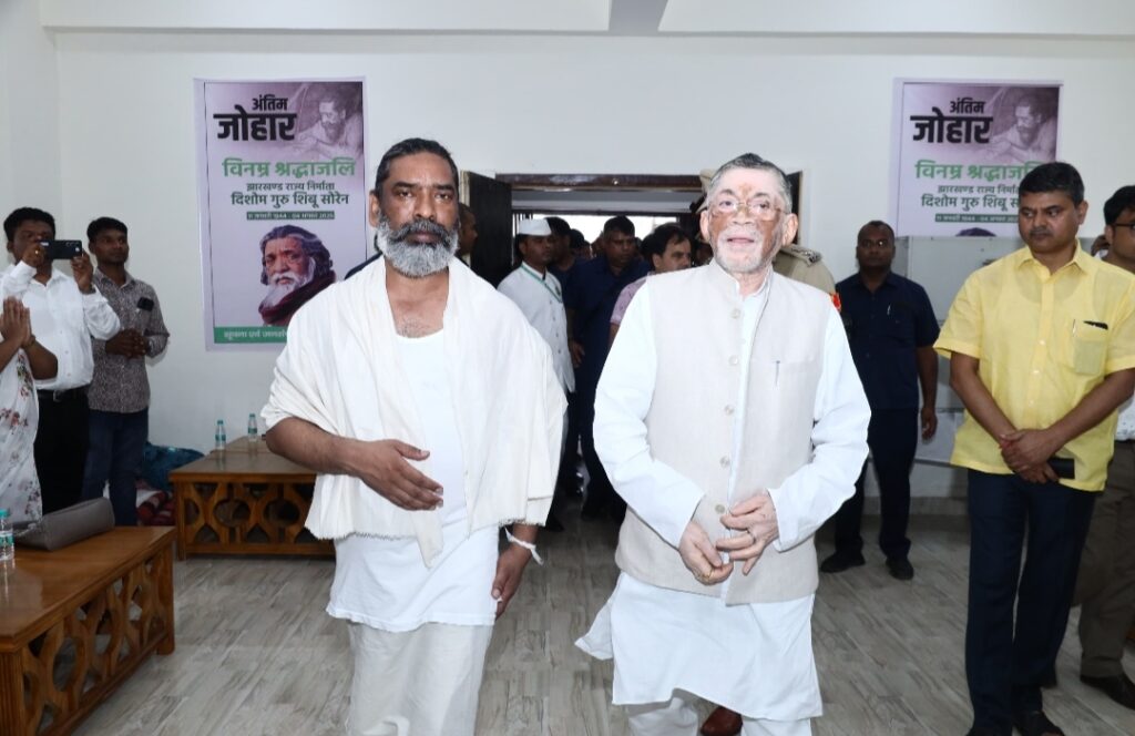 राज्यपाल ने झारखंड के पूर्व मुख्यमंत्री एवं राज्यसभा सांसद दिशोम गुरु स्मृति -शेष शिबू सोरेन जी की तस्वीर पर पुष्प अर्पित कर उन्हें भावभीनी श्रद्धांजलि दी।