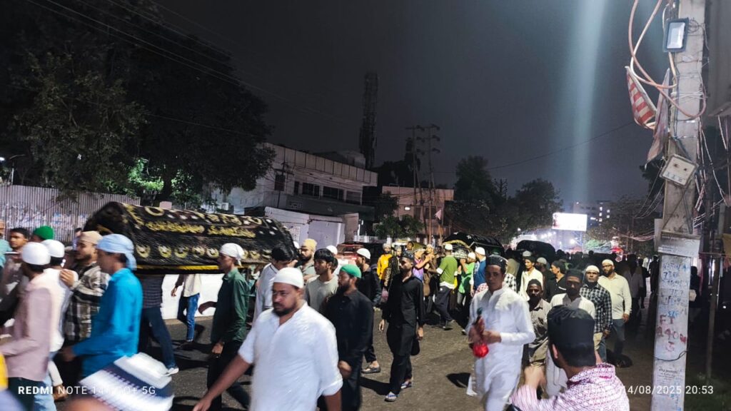 रांची। नामकुम थाना क्षेत्र के मौलाना आजाद कॉलोनी स्थित कोलसर्वे स्थित चिश्तिया बस्ती के रहने वाले फूल बाबू के एक ही परिवार के चार लोगों की पश्चिम बंगाल झालदा से लौटने के क्रम में मौत हो गई। चारों जिसमें दो महिला एक पुरुष, एक बच्चे का जनाजे उठने से कांप उठा और पूरा रांची ग़म में डूब गई। चारों मृतकों का बाद नमाज इशा कांटा टोली कब्रिस्तान में सूपुर्द किया गया, जनाजे में काफी भीड़ थी और सभी की आंखें नम थी। मौलाना आजाद कालोनी नूरी मस्जिद के इमाम मुफ्ती अमीरुल हसन ने जनाजा की नमाज पढ़ाये। बता दे कि अनगड़ा थाना क्षेत्र के चामघट्टी में धान से लदी एक ट्रक
