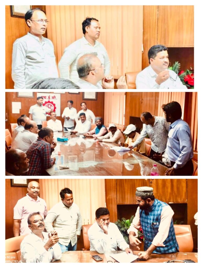 अनगड़ा: राजधानी रांची स्थित एचईसी मुख्यालय में बुधवार का दिन मजदूरों और प्रबंधन, दोनों के लिए यादगार बन गया। पिछले 50 दिनों से चल रहे मजदूर आंदोलन का पटाक्षेप आखिरकार खिजरी विधायक राजेश कच्छप के हस्तक्षेप से हो गया। बैठक में एचईसी प्रबंधन की ओर से निदेशक (कार्मिक) मनोज लकड़ा, निदेशक (उत्पादन) बी.एस. गर्ग, वरीय उप महाप्रबंधक सह प्रभारी HMBP & FFP अरविंद सिंहा, वरीय उप महाप्रबंधक (कार्मिक एवं प्रशासन) लॉरेंस भेंगरा, मुख्य नगर प्रशासक विमल कुमार, वरीय प्रबंधक राघवेंद्र प्रियदर्शी, औद्योगिक संपर्क विभाग के नरेंद्र कुमार मौजूद थे। वहीं विधायक प्रतिनिधि परमेश्वर सिंह व अरुण कुमार, समाजसेवी पंकज कुमार तथा मजदूर नेताओं रनत्थू लोहारा, आजाद, मोइन, अताउल्लाह, वाई त्रिपाठी, प्रमोद कुमार सिंह, विजय साहू, शारदा देवी और राजेश शर्मा भी उपस्थित रहे। बैठक के दौरान मजदूरों की सभी प्रमुख मांगों पर विशेष चर्चा हुई। अंततः विधायक के दबाव और मजदूर नेताओं के एकजुट रुख के आगे प्रबंधन को सभी मांगें माननी पड़ीं। इसके बाद निदेशक (कार्मिक) मनोज लकड़ा स्वयं विधायक राजेश कच्छप के साथ HEC मुख्यालय गेट पर पहुंचे और हड़ताली मजदूरों को संबोधित किया। उन्होंने मजदूरों की समस्याओं के प्रति संवेदनशीलता दिखाते हुए सभी को कल से काम पर लौटने का आग्रह किया।