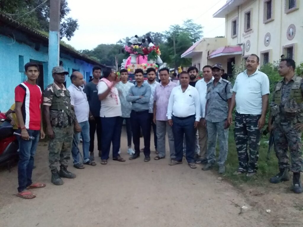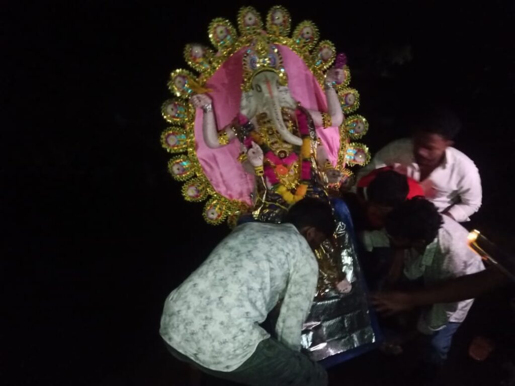 कैरो-लोहरदगा । प्रखंड कैरो जिला लोहरदगा के अंतर्गत विगत 27 अगस्त से गणेश चतुर्थी के अवसर पर तीन दिनों तक चलने वाला गणपति महोत्सव का गणेश प्रतिमा खुट्टा तालाब में विसर्जित कर महोत्सव का 29 अगस्त को समापन हो गया। इस अवसर पर गणेश पूजा आयोजन समिति,दुर्गा पूजा समिति सदस्यो,गणमान्य के उपस्थिति में गणेश जी की जयकारे लगाते हुए दुर्गा बाड़ी भवन से प्रतिमा को उठाकर चौपहिया वाहन में लाया गया,आयोजन समिति के द्वारा मुख्य सड़क होकर नाचते गाते प्रतिमा तालाब के पास लाकर गणेश जी की विधिवत आचार्य कौशल कांत त्रिपाठी जी के द्वारा आरती उतारकर प्रतिमा को तालाब में विसर्जित कर दिया गया। मौके पर गणेश पूजा आयोजन समिति के कृतिक कुमार,राजा कुमार,शशांक पांडे,आकाश प्रजापति,ऋषि कुमार,निखिल यादव,अभिषेक कुमार,बबलू महली,प्रेम कुमार,शिवम पांडेय,पवन ठाकुर,ध्रुव कुमार, रिसभ कुमार,अनिकेत सोनी,समेत दुर्गा पूजा समिति के अध्यक्ष शैलेश कुमार,सचिव अंकित सोनी,कोषाध्यक्ष ब्रजेश कुमार,अंकित कुमार,गौतम साहु,सचिन कुमार,शशि ठाकुर,सुमन सोनी,विष्णु साहु,अमित कुमार,दुर्गा पूजा समिति के समस्त कार्यकारिणी,पदाधिकारी,इत्यादि के अलावा गणमान्य मुख्य रूप से शतीश कुमार पांडेय,विशेश्वर दीन,सुरज मोहन साहु,विवेक प्रजापति,धनंजय वर्मा,संजय साहु, जीतवाहन महतो,बालेश्वर साहु,राजेंद्र सोनी,कैलाश महतो,मनोज साहु,समेत दंडाधिकारी कैरो पंचायत सचिव पवन कुमार थाना के एएसआई रामाधार राम,अनुज तिवारी,समेत कैरो थाना शसस्त्र बल गणपति विसर्जन कार्यक्रम में उपस्थित थे।