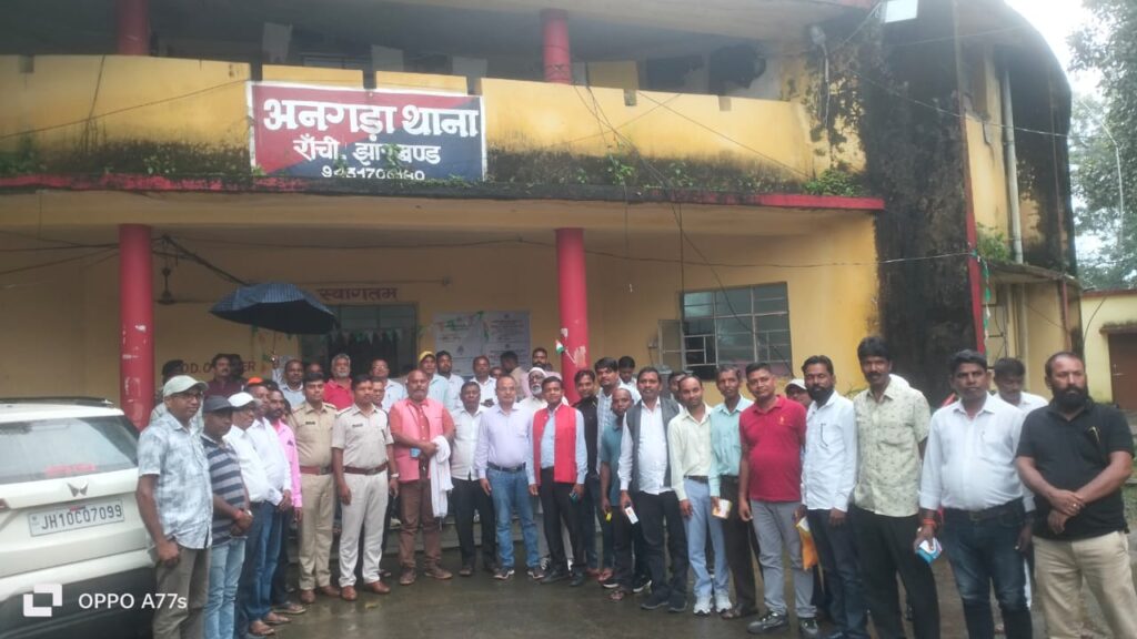 अनगड़ा। शांति समिति अनगड़ा की बैठक में निर्णय हुआ कि सरकार के गाइडलाइन के अनुसार दुर्गोत्सव मनाया जाएगा। बैठक अनगड़ा थाना परिसर में बीडीओ जयपाल सोय की अध्यक्षता में हुई। निर्णय हुआ कि पूरी श्रद्धा व भक्ति के साथ दुर्गा पूजा मनाया जाएगा। पंडाल को रोड किनारे से हटाकर बनाना है। ताकि आवागमन बाधित ना हो। पुरूष व महिला का अलग अलग लाइन बनाए। प्रतिमा का विर्सजन 2 व 3 अक्टूबर को किया जाएगा। इस अवसर पर इंस्पेक्टर हंसे उरांव, थाना प्रभारी हीरालाल साह, पूर्व विधायक रामकुमार पाहन, भाजपा के पूर्व रांची जिलाध्यक्ष जैलेन्द्र कुमार, पूर्व जिलाध्यक्ष सुरेन्द्र महतो, रामसाय मुंडा, जिपस अनुराधा मुंडा, सखीचंद महतो, गबेश्वर महतो, गोर्वधन महतो, रामनाथ महतो, सुनील महतो, रामकृष्ण चौधरी उर्फ मदारी, लोकनाथ पाहन, नीलकंठ चौधरी उर्फ मंटू, रब्बानी राज, किशोर करमाली, अजय भोगता, कामेश्वर महतो, सिददिक अंसारी, मुमताज खान, सुरेश महतो, बसंत साहू आदि उपस्थित थे।