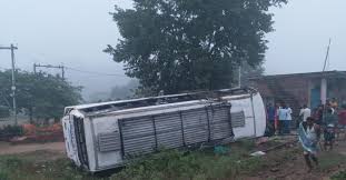 कोडरमा । जिले के सतगावां थाना अंतर्गत अंगार मोड़ के समीप सोमवार सुबह एक बस पलट गई, जिससे उसपर सवार 11 लोग घायल हो गए। जानकारी के अनुसार सतगावां से रांची जाने वाली सागर नामक बस प्रतिदिन सतगावां से रांची जाती है। सोमवार की सुबह करीब 4:30 बजे जैसे ही सतगांवां थाना क्षेत्र के अंगार मोड़ के समीप पहुंची तो अनियंत्रित होकर पलट गई जिससे सवार 11 लोग घायल हो गए। घटना की सूचना मिलते ही सतगांवां पुलिस मौके पर पहुंची और स्थानीय लोगों के सहयोग से सभी घायलों को सामुदायिक स्वास्थ्य केंद्र पहुंचाया गया। घायल इन 11 लोगों में 3 की स्थिति नाजुक बनी हुई है। स्थानीय लोगों की मानें तो यह बस काफी गति में चलती है और यही वजह रही कि अंगार मोड़ के समीप तीखे घुमाव के कारण बस चालक का बस पर संतुलन नहीं रहा और बस अनियंत्रित होकर पलट गई। जानकारी के अनुसार उक्त बस में अधिकांश छात्र, जो हजारीबाग, रांची जैसे शहरों में हॉस्टल में रहकर पढ़ाई करते हैं, यात्रा कर रहे थे। घायलों में सचिन कुमार (18, पिता अनिल यादव, ग्राम मोहनपुर), रानी देवी (41, पति राजेश सिंह, पचौरी), ब्रह्मदेव यादव (62, पिता मंगल महतो ग्राम नंदूडीह), अंकित कुमार (20, पिता उदय सिंह, पचौरी), रामस्वरूप यादव (55, पिता प्रयाग यादव, बदाल), काजल कुमारी (18, पिता अनिल यादव, पचौरी), रिया कुमारी (17, पिता अनिल यादव, पचौरी), दीपक कुमार (19, पिता महेंद्र दास, पचौरी), राहुल प्रियदर्शी (25, पिता विजय कुमार, हलकुसा), राजेश कुमार (24, पिता सुखदेव चौधरी, मोदीडीह), ललिता कुमारी (29, पति संतोष कुमार, नांदुरी) शामिल हैं। सतगावां थाना में कार्यरत एसआई अरविंद सिंह जो कोडरमा ट्रेनिंग के लिए उक्त बस से ही जा रहे थे, वे भी घायल हो गए हैं। इधर सभी घायल यात्रियों को बेहतर इलाज के लिए सदर अस्पताल कोडरमा रेफर कर दिया गया है।