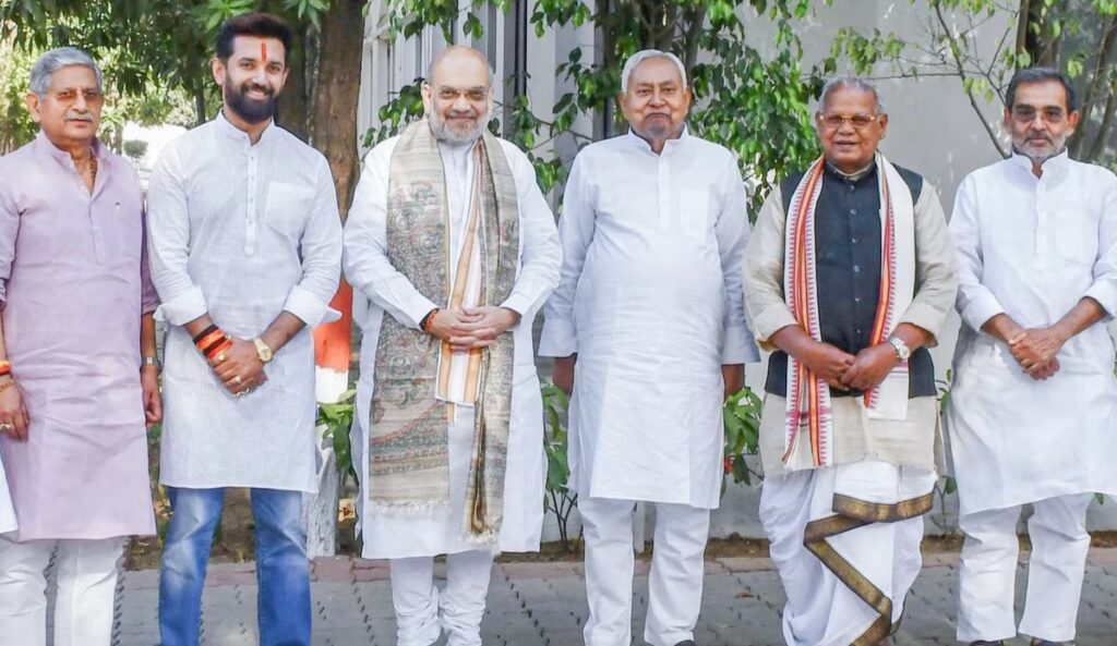 पटना । बिहार विधानसभा चुनाव को लेकर NDA में सीट शेयरिंग का फॉर्मूला तय हो गया है. नई दिल्ली में चली मैराथन मीटिंग के बाद तस्वीर साफ हो गई कि गठबंधन में कौन सी पार्टी कितनी सीटों पर चुनाव लड़ेगी. बीजेपी 101 सीटों पर, जेडीयू 101 सीटों पर, चिराग पासवान की LJP (R) 29 सीटों पर, उपेंद्र कुशवाहा की RLM- 06 सीटों पर और जीतनराम मांझी की पार्टी HAM 06 सीटों पर चुनाव लड़ेगी. बिहार में बीजेपी के प्रभारी धर्मेंद्र प्रधान ने कहा कि हम एनडीए के साथियों ने सौहार्दपूर्ण वातावरण में सीटों का वितरण पूर्ण किया. एनडीए में सीट बंटवारे से ये बात साफ हो गई है कि इस बार छोटे भाई- बड़े भाई का रोल खत्म हो गया है, क्योंकि बीजेपी और जेडीयू दोनों की पार्टियों को बराबर 101-101 सीटें दी गई हैं. हालांकि इस बात का संकेत बिहार बीजेपी के प्रदेश अध्यक्ष दिलीप जायसवाल ने पहले ही दे दिया था. उन्होंने पटना में हुई एक मीटिंग के बाद कहा था कि इस बार चुनाव में कोई बड़े भाई-छोटे भाई की भूमिका में नहीं रहेगा.