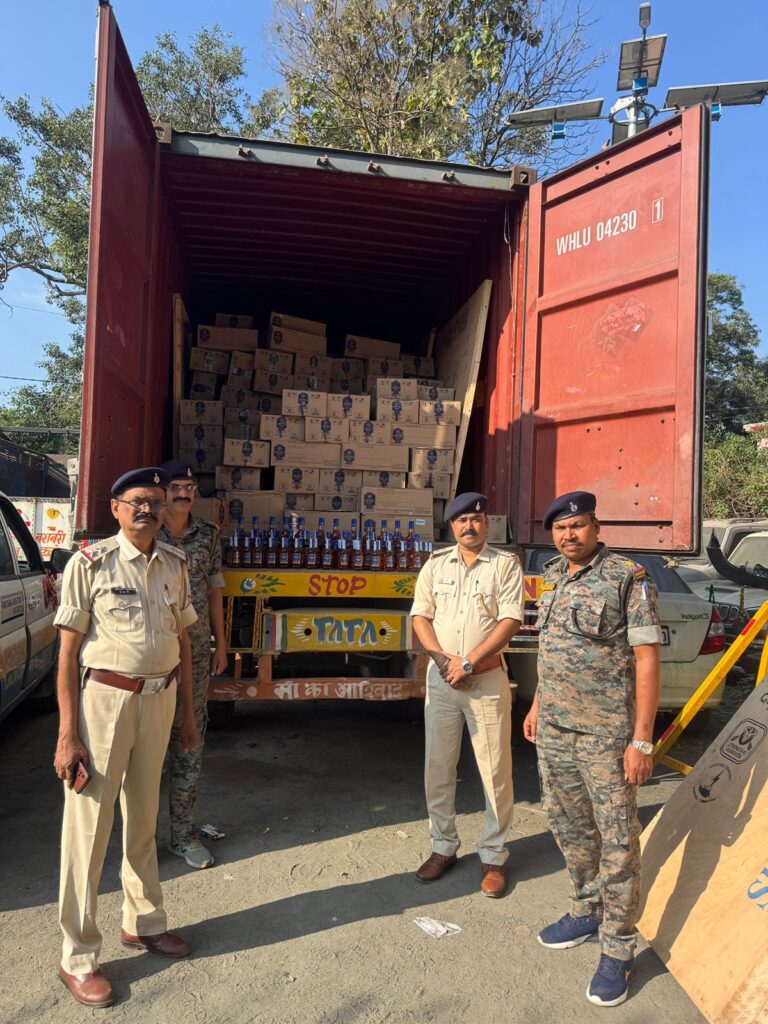 रांची। लोहरदगा एसपी सादिक़ रिज़वी ने पत्रकारों को बताया कि मद्य निषेध इकाई, विहार, पटना के माध्यम से सूचना प्राप्त हुआ कि एक बंद कंटेनर ट्रक जिसका रजि० नं० बीआर 01 जीएल 7659 में अवैध अंग्रेजी शराब लोड कर चन्दवा होते हुए कुडू थाना क्षेत्र पार करने वाला है। गश्ती दल के साथ कुडू वस स्टेण्ड के आगे सेतु गैरेज के पास वाहनों को चेक करना प्रारंभ किया। वाहन चेकिंग के कम में एक बंद कंटेनर ट्रक जिसका रजि० नं० बीआर 01GL7659 को पकड़ा गया। उक्त ट्रक के कंटेनर को चेक करने पर 01. 172 पेटियों में प्रत्येक पेटी में 12 पीस Seagram’s Imperial Blue Hand Picked Grain Whisky-750 ML (For sale in Madhya Pradesh only) अग्रेंजी शराव, 02. 96 पेटियों में प्रत्येक पेटी में 24 पीस Seagram’s Imperial Blue Hand Picked Grain Whisky-375 ML (For sale in Madhya Pradesh only) अग्रेंजी शराब एवं 03. 145 पेटियों में प्रत्येक पेटी में 48 पीस Seagram’s Imperial Blue Hand Picked Grain Whisky-180 ML (For sale in Madhya Pradesh only) अग्रेंजी शराव, कुल 413 पेटी में कुल 11,328 पीस अवैध अंग्रेजी शराब वरामद हुआ। तदुपरांत 01. ट्रक के ड्राईवर अनिल, उम्र करीब 47 वर्ष, पिता बरन सिंह, पता फतेपुर, चंदिला, थाना ओल्ड फरीदाबाद, जिला फरीदाबाद, राज्य हरियाणा एवं 02. ट्रक के खलासी ब्रिजेश कुमार, उम्र करीब 45 वर्ष, पिता सत्य प्रकाश, पता हो०नं० एम०सी०एफ०/820, जनता विद्यालय के पास, सुभाष कॉलोनी, वल्लवगढ़, थाना बल्लबगढ़, चौकी आदर्शनगर, जिला फरीदाबाद, राज्य हरियाणा को विधिवत गिरफ्तार किया गया। जिन्हे 17.10.2025 को न्यायिक हिरासत में भेजा जा रहा है।