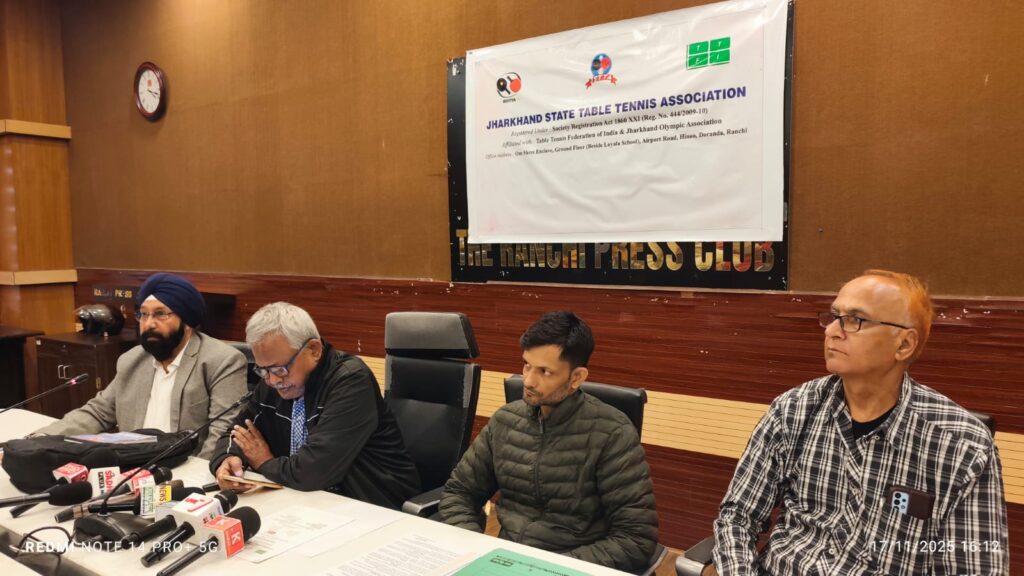 रांची। समर जीत सिंह महासचिव झारखण्ड राज्य टेबल टेनिस संघ ने संवाददाता सम्मेलन में पत्रकारों को संबोधित करते हुए बताया कि