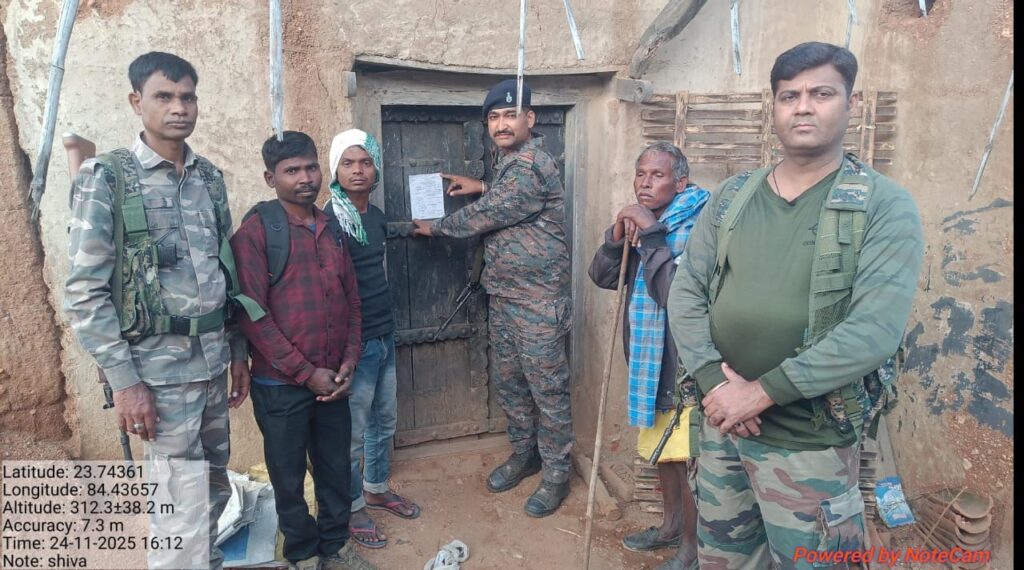 लातेहार:न्यायालय के आदेशानुसार लातेहार थाना कांड संख्या 72/23, दिनांक 05.04.2023, धारा 307/341/347/384/386/389/452/504/34 भा०द०वि० एवं 17 CLA Act के तहत नामजद फरार आरोपी जेजेएमपी के एरिया कमांडर शिव सिंह उर्फ शिव जी उर्फ शिवा, पिता सुखलाल सिंह, निवासी ग्राम गोदना, थाना लातेहार, जिला लातेहार के घर पर सोमवार, 24 नवंबर 2025 को सब इंस्पेक्टर राजा दिलावर द्वारा इश्तेहार चस्पा किया गया।