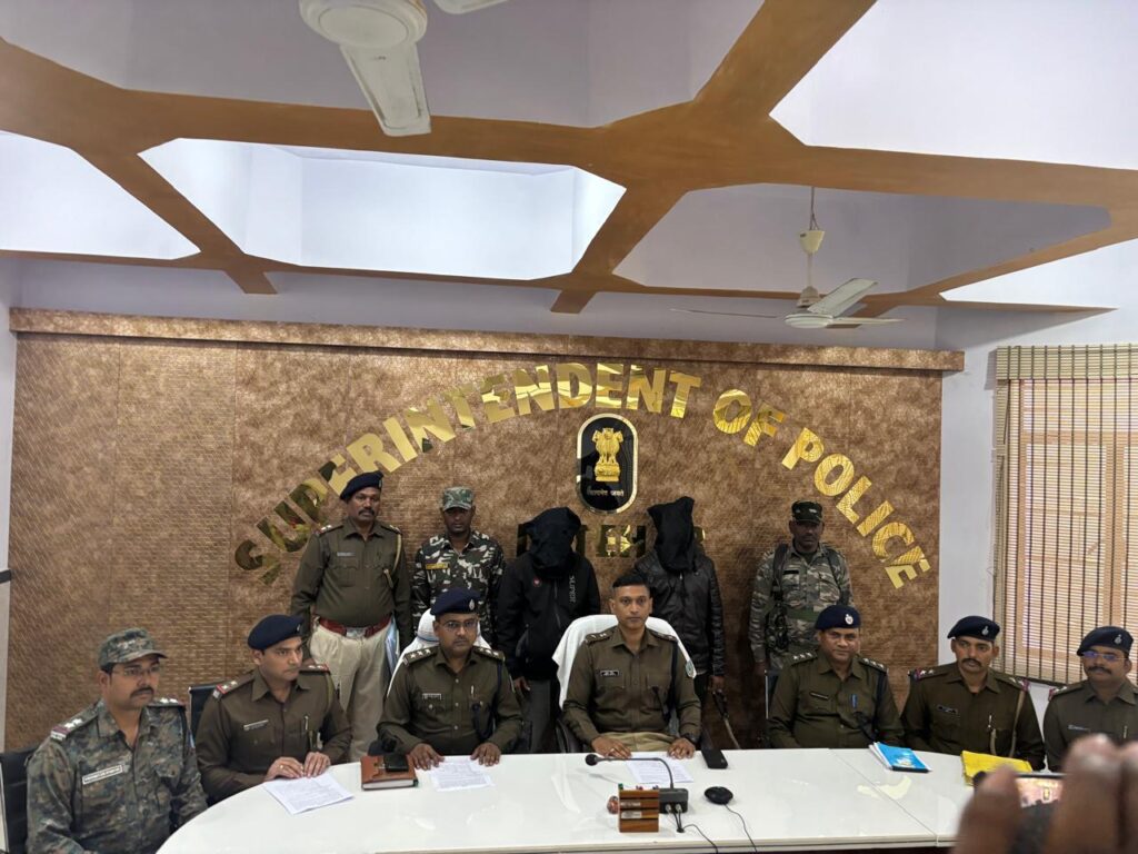 लातेहार: पुलिस अधीक्षक कुमार गौरव के निर्देशन में प्राप्त गुप्त सूचना के आधार पर दिनांक 03 दिसम्बर 2025 को लातेहार एवं मनिका थाना पुलिस द्वारा संयुक्त रूप से चलाए गए विशेष छापामारी अभियान में प्रतिबंधित उग्रवादी संगठन झारखंड जन मुक्ति परिषद् जेजेएमपी (JJMP) के दो सक्रिय एवं कुख्यात एरिया कमांडरों सुनील उराँव और मुकेश लोहरा को गिरफ्तार करने में पुलिस ने बड़ी सफलता हासिल की है। दोनों लंबे समय से विभिन्न आपराधिक घटनाओं को अंजाम देते रहे थे तथा कई थाना क्षेत्रों में वांछित थे।पुलिस अधीक्षक ने आज पुलिस सभागार में आयोजित प्रेस वार्ता में बताया कि गिरफ्तार उग्रवादियों में से सुनील उराँव पर सरकार द्वारा 2 लाख रुपये का इनाम घोषित था। दोनों कई वर्षों से जेजेएमपी संगठन के सक्रिय सदस्य रहे हैं तथा पुलिस मुठभेड़ों सहित कई गंभीर घटनाओं में शामिल रहे हैं।गिरफ्तार अपराधियों का विवरण एवं आपराधिक इतिहास