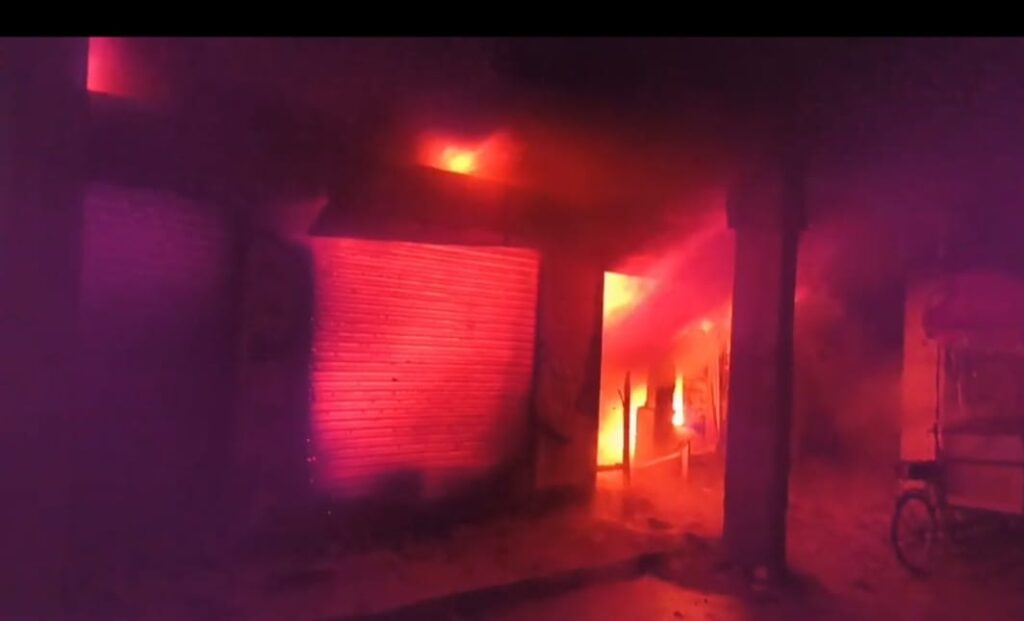 हुसैनाबाद। जपला–छतरपुर रोड पर रेलवे ओवर ब्रिज के समीप अवस्थित मनोज इलेक्ट्रिक एवं इलेक्ट्रॉनिक दुकान में बीती रात भीषण आग लगने की घटना सामने आई है। बताया जा रहा है कि आग लगने का कारण बिजली का शॉर्ट सर्किट है।