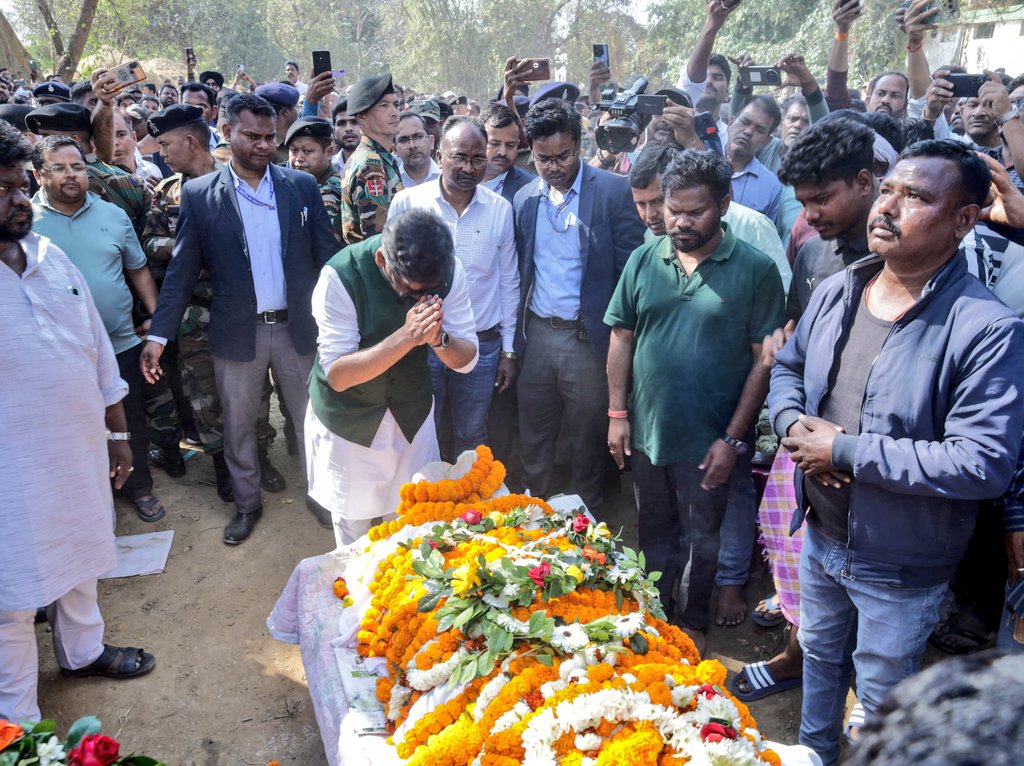 रांची। झारखंड के पूर्व मुख्यमंत्री चंपाई सोरेन के पोते वीर सोरेन गुरुवार को पंचतत्व में विलीन हो गए. गुरुवार को चंपाई सोरेन के पैतृक गांव जमशेदपुर के नजदीक सरायकेला-खरसावां जिले के जिलंगगोड़ा गांव में अंतिम संस्कार किया गया. उनके अंतिम यात्रा में मुख्यमंत्री हेमंत सोरेन समेत झारखंड के विधायक, सांसद और क्षेत्र में चंपाई सोरेन के समर्थक और रिश्तेदार शामिल हुए. वीर सोरेन का 24 फरवरी 2026 मंगलवार को मनाली में निधन हो गया था. वे अपने दोस्तों के साथ मनाली घूमने गए थे. मनाली पुलिस की ओर से दी गई जानकारी के अनुसार, पूर्व मुख्यमंत्री चंपाई सोरेन के पोते वीर सोरेन अपने दोस्तों के साथ 22 फरवरी को मनाली पहुंचे थे. वे सभी सिमसा के हिमालयन सैलेट होम स्टे में ठहरे थे. 23 फरवरी को उन्होंने सोलंग और सेथन क्षेत्र का भ्रमण किया था. वीर सोरेन 24 फरवरी की दोपहर करीब 12:30 बजे घूमकर होम स्टे स्थित कमरे में आए, तो उन्होंने सिर में तेज दर्द की शिकायत की. दोस्तों ने ऑनलाइन ब्लिंकिट से दवा मंगवाकर दी, जिसके बाद वे सो गए. दोपहर करीब 2:30 बजे दोस्तों ने कमरे में गिरने की आवाज सुनी. जब वे कमरे में गए, तो वीर सोरेन फर्श पर अचेत पड़े थे. आनन-फानन में उन्हें प्राइवेट गाड़ी से मनाली सिविल अस्पताल ले जाया गया, जहां डॉक्टरों ने उन्हें मृत घोषित कर दिया. प्रत्यक्षदर्शियों के अनुसार, वीर सोरेन को जब अस्पताल ले जाया जा रहा था, तब उनके मुंह से झाग निकलना शुरू हो गया था. मनाली सिविल अस्पताल में डॉक्टरों ने उन्हें मृत घोषित कर दिया. जमशेदपुर के जिलंगगोड़ा गांव में दोपहर करीब 12 बजे जैसे ही वीर सोरेन का पार्थिव शरीर गांव पहुंचा, पूरा गांव गमगीन हो गया. बड़ी संख्या में ग्रामीण, शुभचिंतक और समर्थक अंतिम दर्शन के लिए जमा हो गए. सभी ने दिवंगत आत्मा की शांति के लिए प्रार्थना की. वीर सोरेन के अंतिम संस्कार से पहले झारखंड के मुख्यमंत्री हेमंत सोरेन पूर्व मुख्यमंत्री चंपाई सोरेन के जिलंगगोड़ा स्थित आवास पर पहुंचकर उनके पोते को श्रद्धांजलि दी. इस दौरान उन्होंने चंपाई सोरेन और परिजनों से बातचीत कर उन्हें ढांढ़स बंधाई।